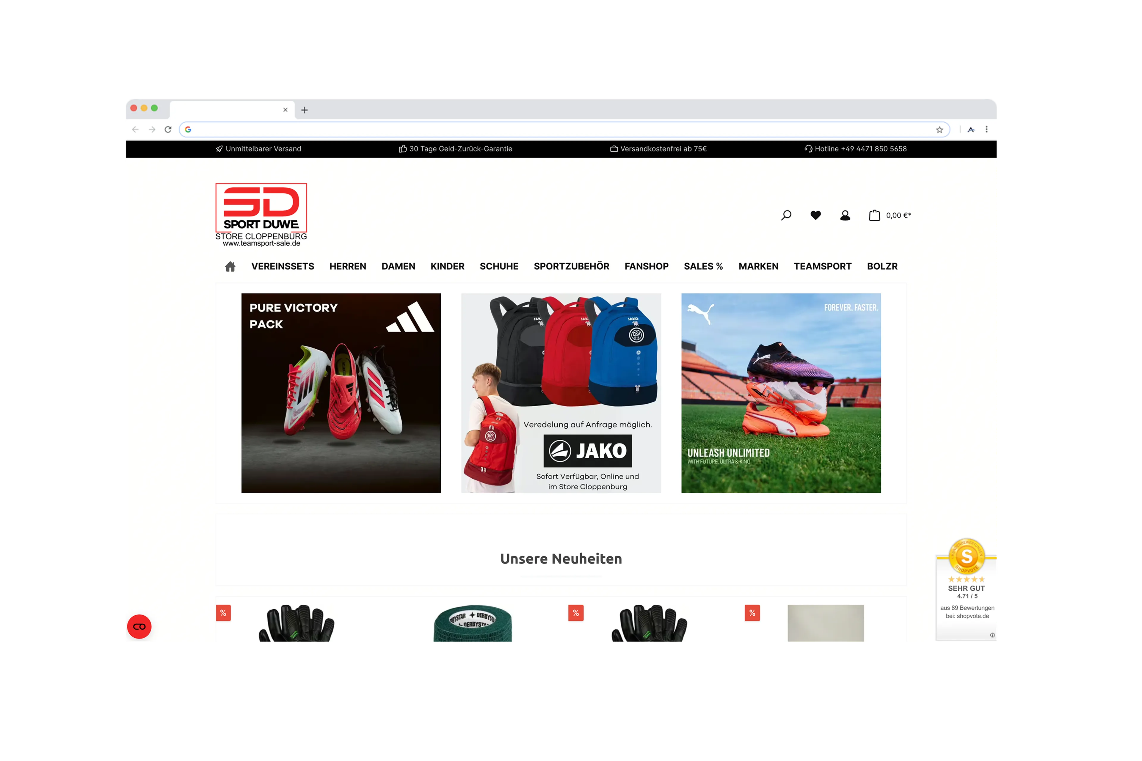 Unsere Optimierungen steigern nicht nur die Geschwindigkeit Ihres Shops, sondern tragen auch maßgeblich dazu bei, dass Ihre Kunden ein reibungsloses und angenehmes Einkaufserlebnis genießen. Dies führt zu einer höheren Kundenzufriedenheit, einem besseren Ranking in Suchmaschinen und letztlich auch zu einer steigenden Conversion-Rate. Vertrauen Sie auf unsere umfassende Erfahrung und lassen Sie uns gemeinsam sicherstellen, dass Ihr Shop stets auf Höchstleistung läuft und den steigenden Anforderungen des E-Commerce-Marktes gerecht wird.